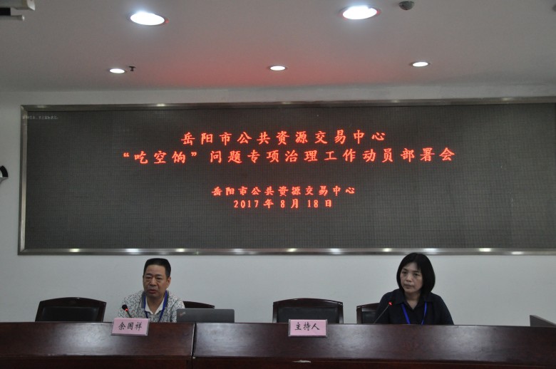 会上,中心党组成员、副主任宋洁传达了上级会议精神,并宣读了《岳阳市公共资源交易中心 “吃空饷”问题专项治理工作实施方案》,对专项治理工作进行了动员部署和具体的工作安排。