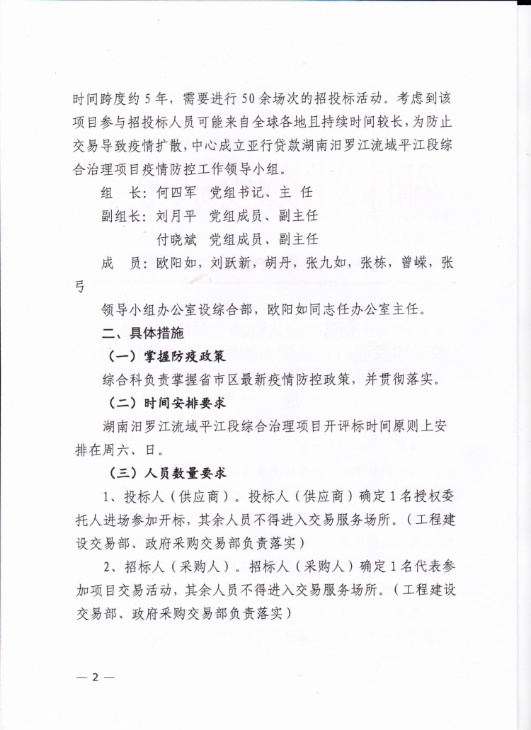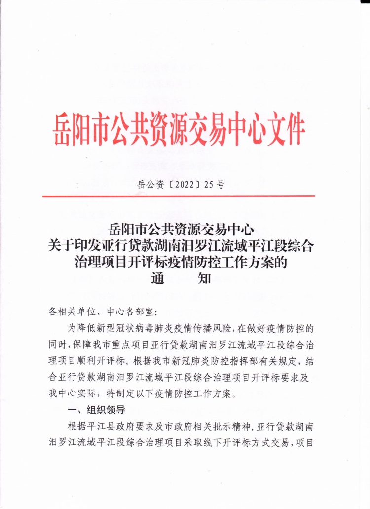 岳阳市公共资源交易中心关于印发亚行贷款湖南汨罗江流域平江段综合治理项目开评标疫情防控工作方案的通知