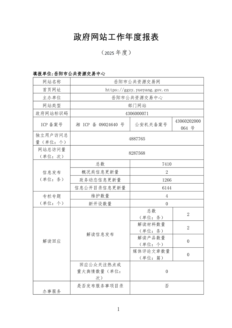 岳阳市公共资源交易中心2025年政府网站工作年度报表