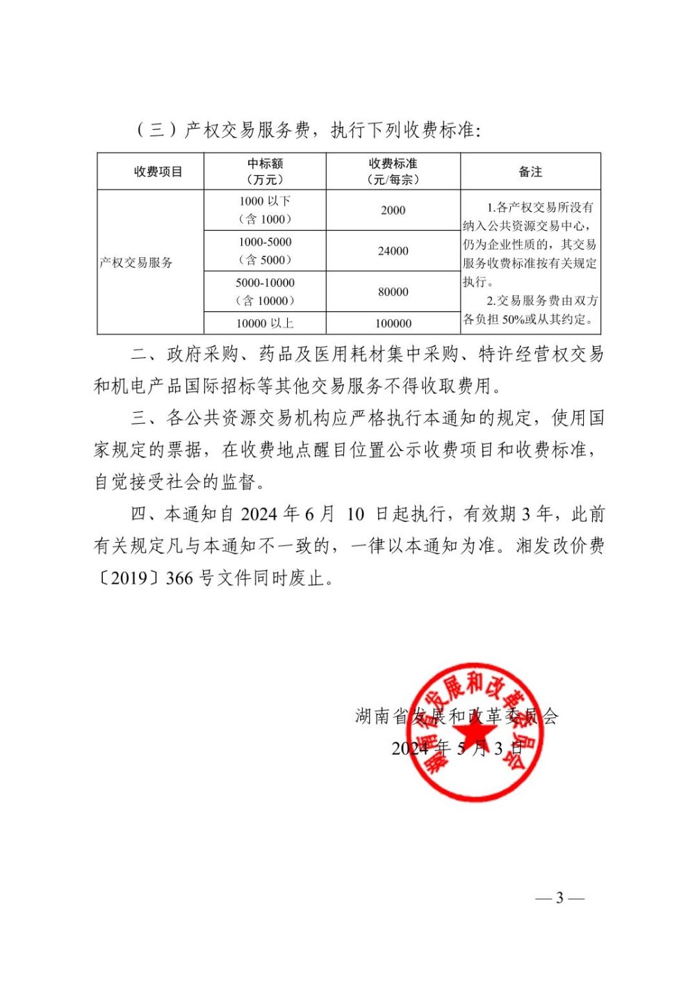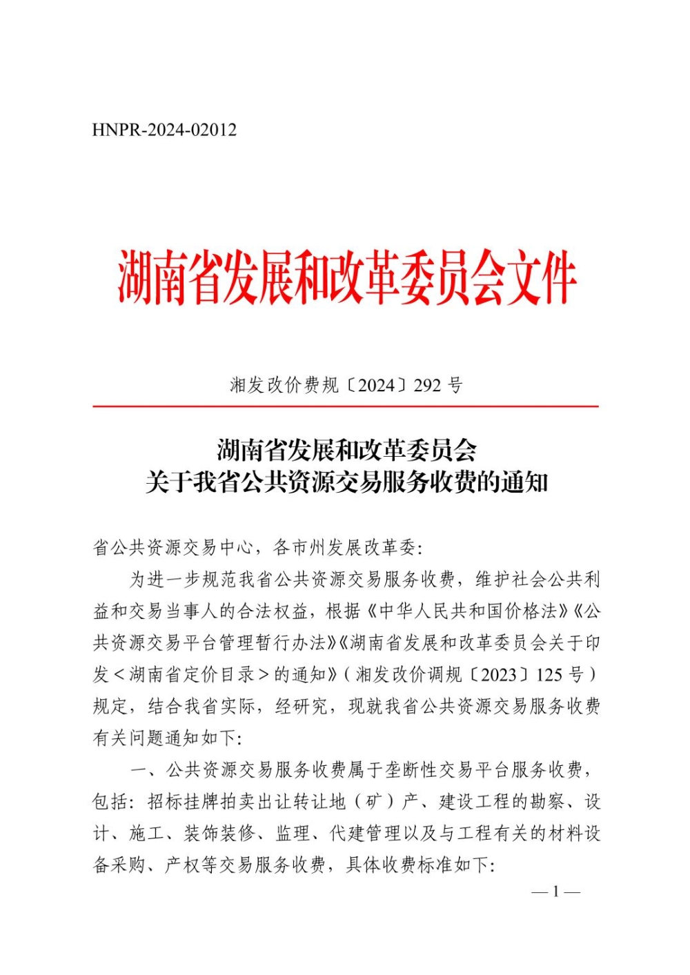 湘发改价费规〔2024〕292号 关于我省公共资源交易服务收费的通知