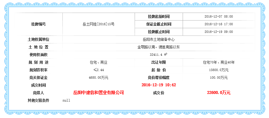 信息来源:【岳阳市公共资源交易中心】【信息时间:2016-12-19 14:57】 【阅读次数: