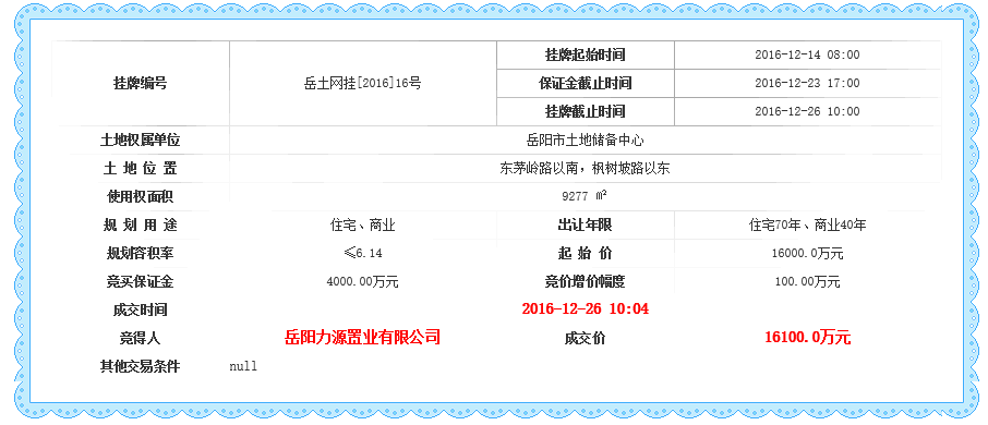 信息来源:【岳阳市公共资源交易中心】【信息时间:2016-12-26 14:57】 【阅读次数:
